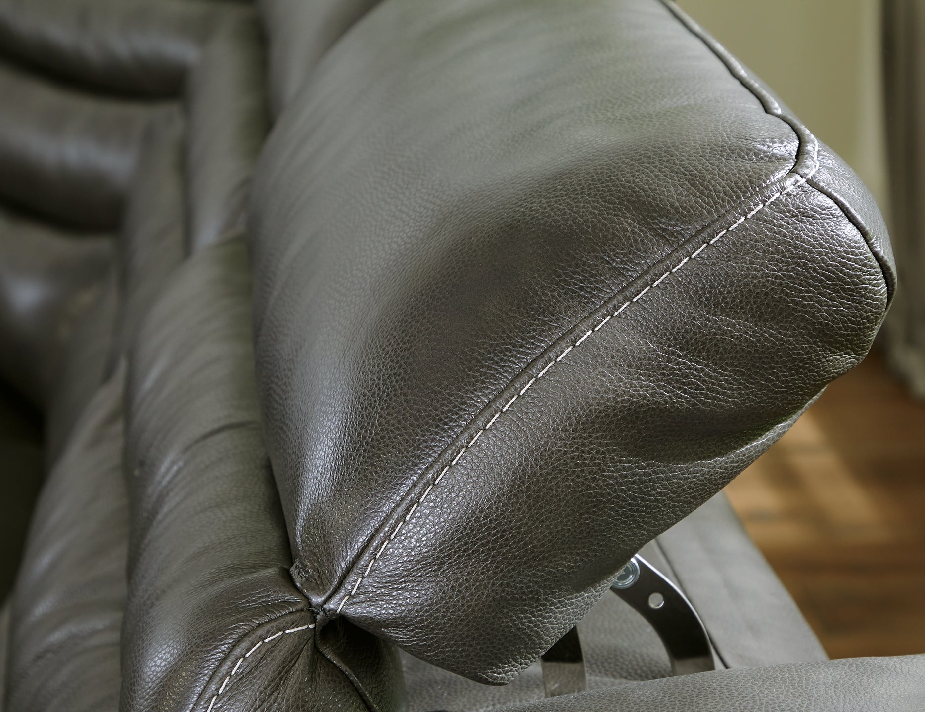 For those seeking to curate a living room retreat that offers superior comfort and a contemporary aesthetic, this sleekly designed power reclining sectional will become your favorite source of at-home serenity. Rest on expertly matched leather and faux leather upholstery, and use the one-touch power control to recline and adjust the headrests with ease. As you recharge after a long day, your devices can too with USB charging. This sectional is visually enticing in a luxe dark gray, with slope track arms and stitched detailing on the back to enhance its modern appeal.